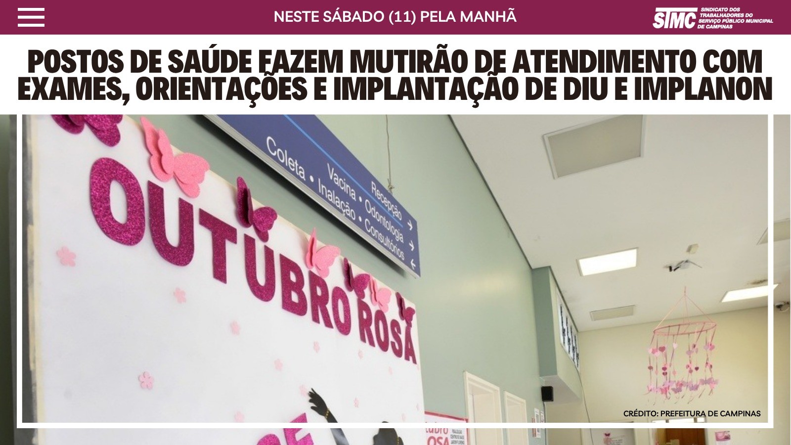 O STMC reforça a necessidade da prevenção de doenças e os mutirões são uma oportunidade de cuidar da saúde. Também informamos aos servidores da saúde que qualquer problema como sobrecarga de trabalho pode ser denunciado no telefone (19) 3236-0665.