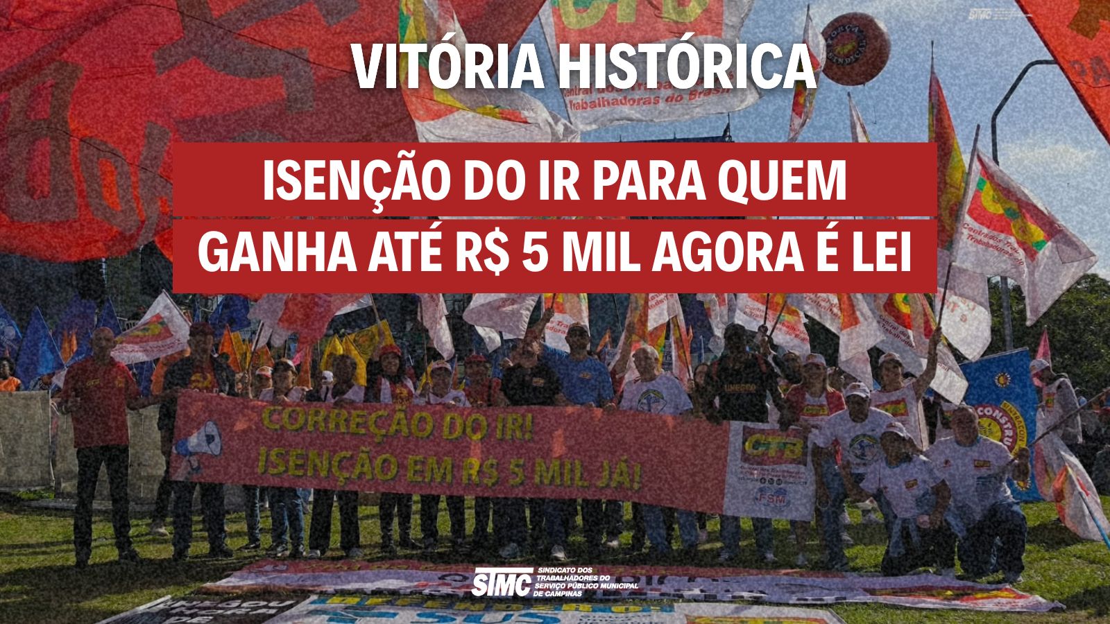 Celebramos com a classe trabalhadora, nossa central sindical CTB e o povo brasileiro. A isenção vai beneficiar milhares de servidores municipais que terão um alívio nos descontos nos salários.