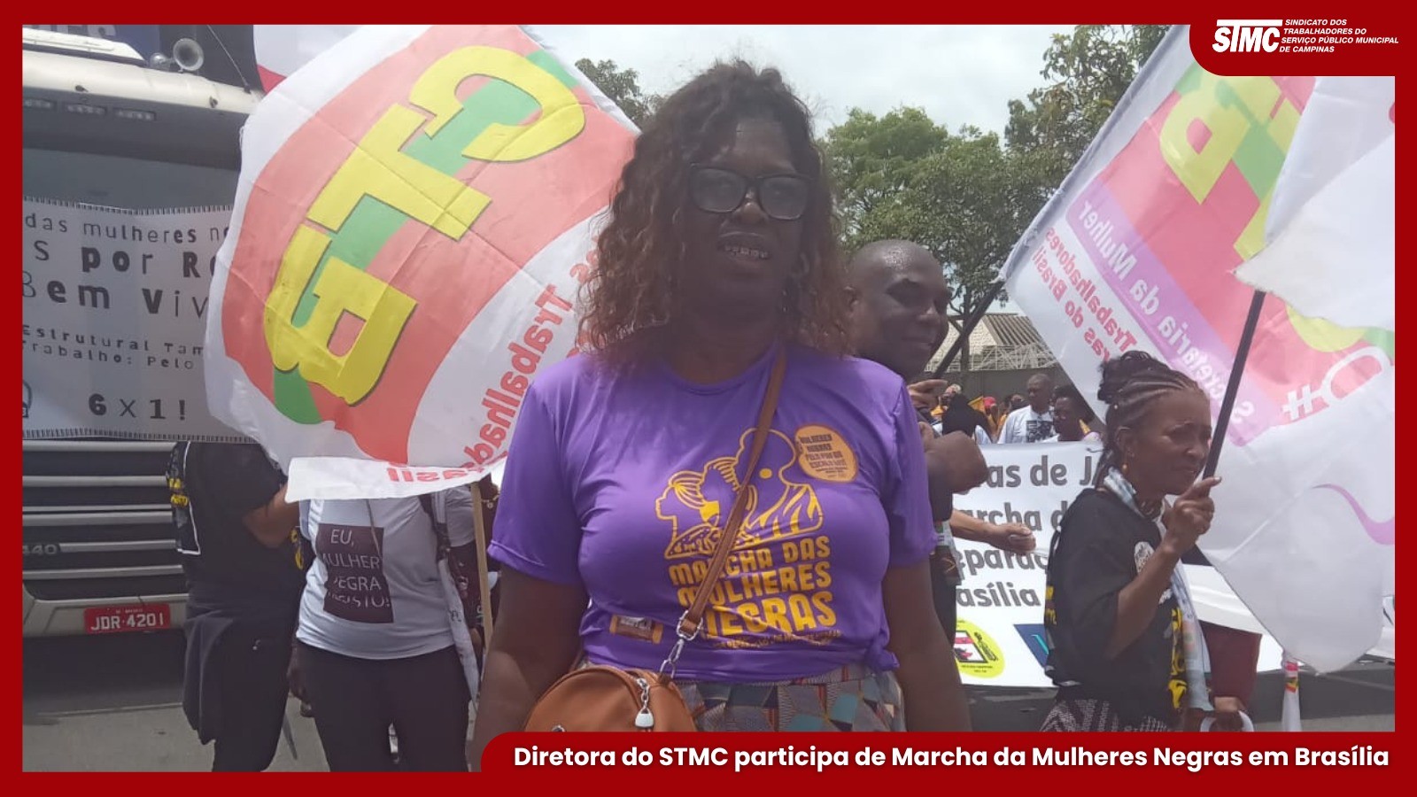 “Viemos lutar pela nossa vida, por trabalho digno, respeito e nossos direitos. Chega de mortes, preconceito de gênero e racial. Lutamos pelo empoderamento da mulher negra”, disse Sandra Rocha. Ela esteve na marcha representando o STMC e junto com a nossa central sindical CTB.