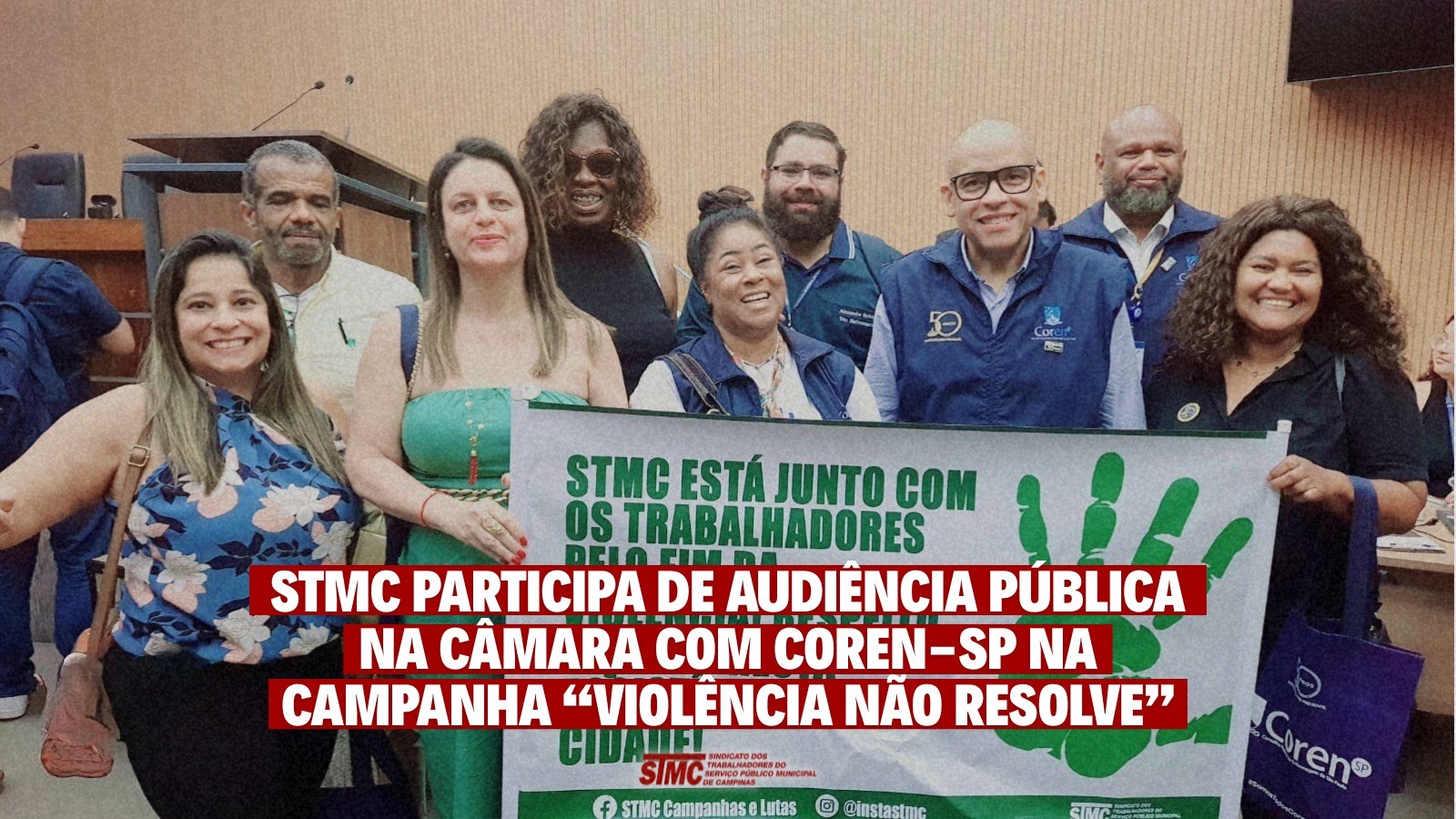 A audiência foi uma parceria do Poder Legislativo de Campinas com o Conselho Regional de Enfermagem de São Paulo (Coren-SP) e entidades sindicais como o STMC. Na audiência, foram debatidos ainda a precariedade dos locais de trabalho, saúde mental, assédio, sobrecarga e a jornada de 30 horas. O Coren realiza a Campanha “Violência Não Resolve”.