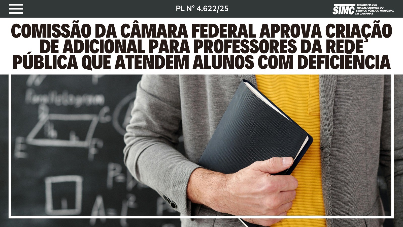 O Sindicato dos Trabalhadores do Serviço Público Municipal de Campinas (STMC) informa que a Comissão de Defesa dos Direitos das Pessoas com Deficiência da Câmara dos Deputados aprovou o Projeto de Lei (PL) nº 4.622/25 que cria um adicional para os professores da educação básica que atuem com alunos com deficiência.