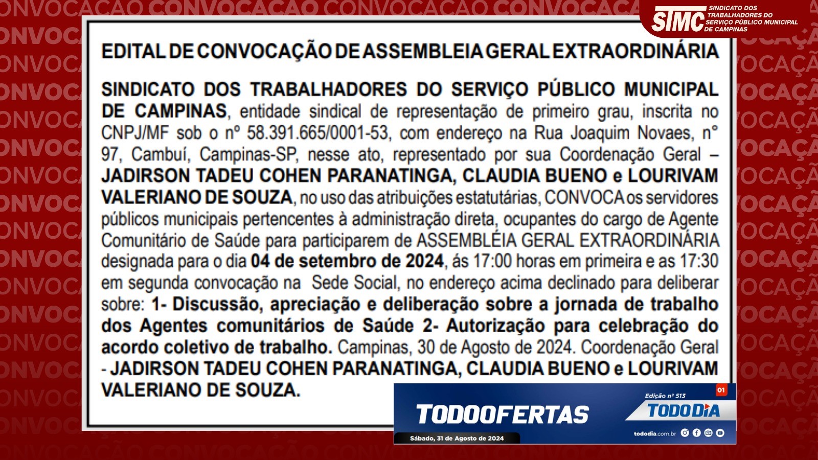CAMPANHA SALARIAL 2025: CONVOCAÇÃO PARA ASSEMBLEIA GERAL EXTRAORDINÁRIA, 4 DE JUNHO, ÀS 17H, NA SEDE DO STMC