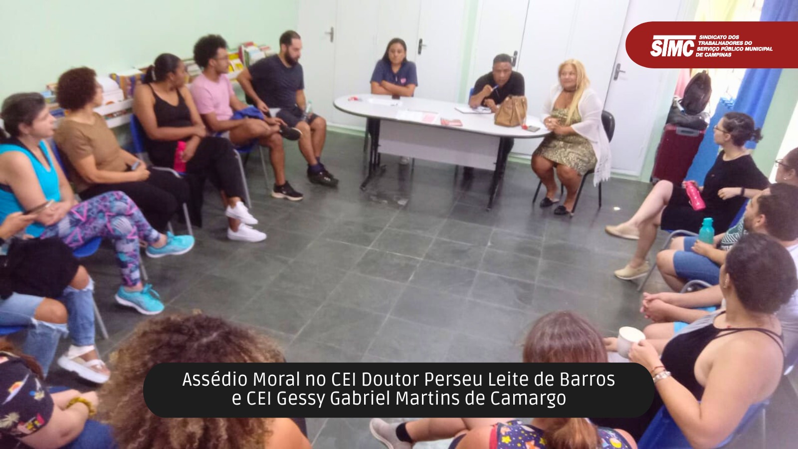Diretores do Sindicato dos Trabalhadores do Serviço Público Municipal de Campinas (STMC) estiveram, na quinta-feira (25), no Centro de Educação Infantil (CEI) Doutor Perseu Leite de Barros e CEI Gessy Gabriel Martins de Camargo, para conversar com os servidores e servidoras depois da entidade receber inúmeras denúncias de assédio moral. A situação é tão grave que são registrados afastamentos por estresse traumático no ambiente trabalho.