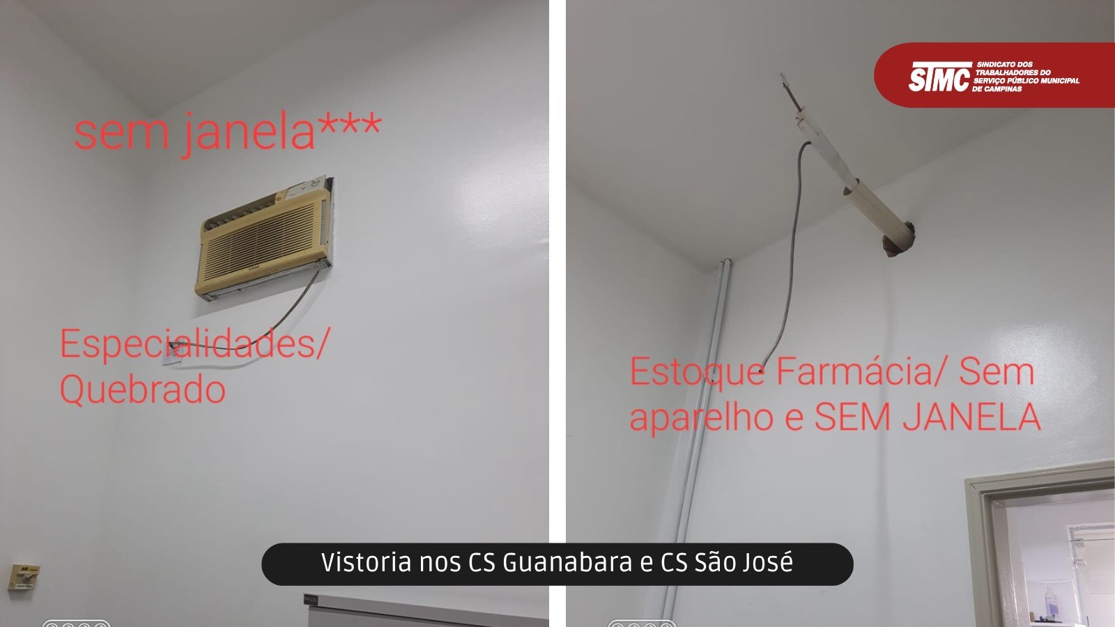Campinas vive nas últimas semanas temperaturas de quase 40ºC e os trabalhadores de vários centros de saúde sofrem com o descaso da Prefeitura de Campinas que deixa aparelhos de ar-condicionado quebrados. Nesta semana, os diretores do Sindicato dos Trabalhadores do Serviço Público Municipal de Campinas (STMC) visitaram os Centros de Saúde Guanabara e São José que vivem situação caótica com equipamentos quebrados, falta de ar-condicionado, mobiliário antigo espalhado por corredores e infiltração de água no teto de salas.