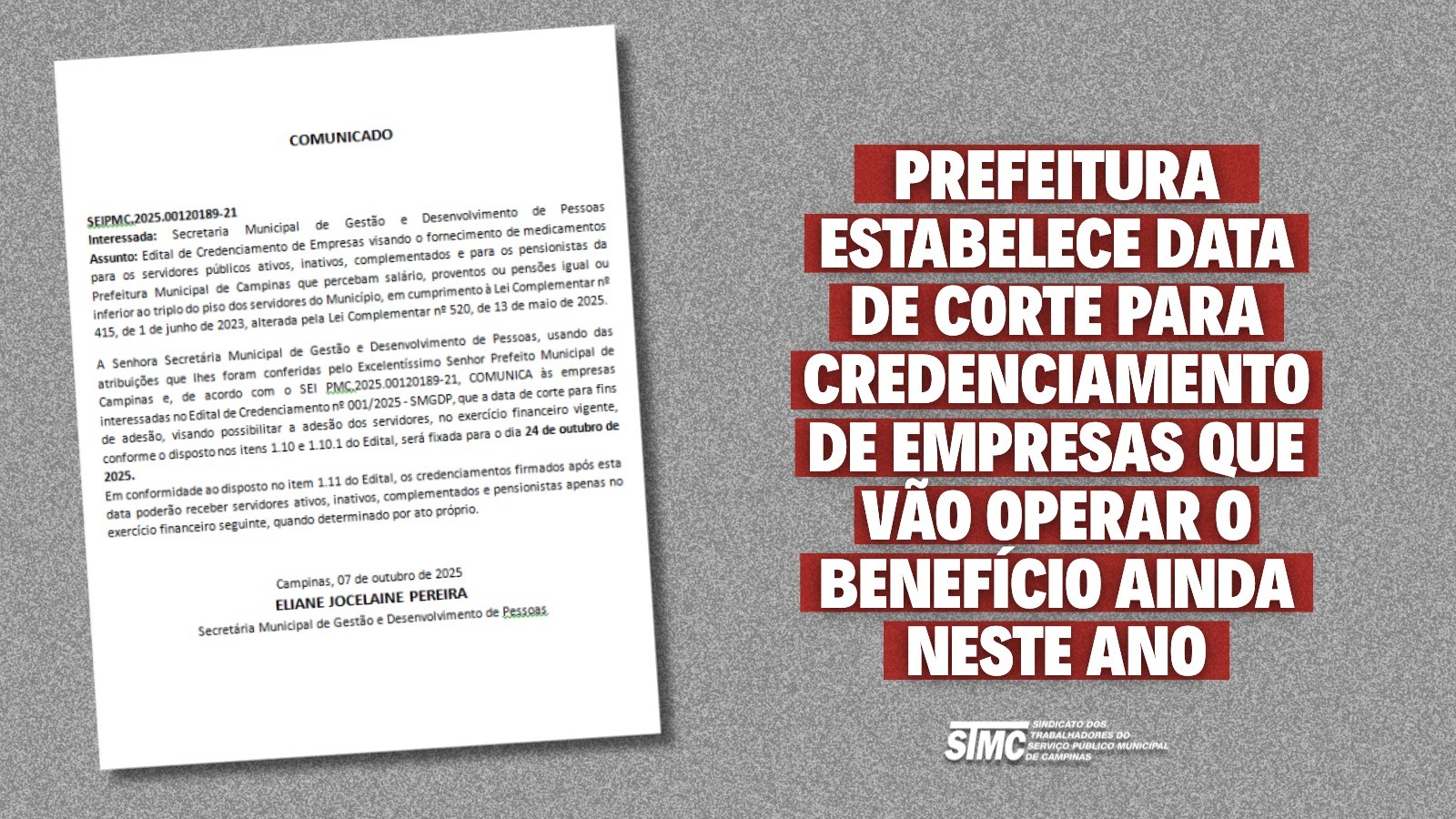 Mais de 13,3 mil servidores da ativa, aposentados e pensionistas, que recebem até três pisos salariais da Prefeitura de Campinas (atualmente em R$ 6.398,73), terão direito a comprar medicamentos de uma lista mínima de 616 apresentações SEM PAGAR NENHUM CENTAVO. A Prefeitura de Campinas é que vai pagar as empresas operadoras do benefício.