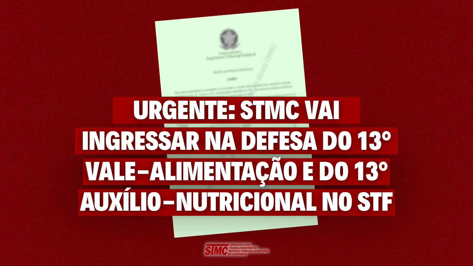 URGENTE: STMC vai ingressar na defesa do 13º Vale-Alimentação e do 13º Auxílio-Nutricional no STF