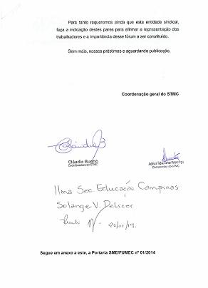 O Sindicato dos Trabalhadores do Serviço Público Municipal de Campinas protocolou um ofício, de número 148/2014, onde requer nova composição da Comissão de Estudos de EJA, garantindo assim a paridade e participação de todos os envolvidos na questão em nossa cidade.