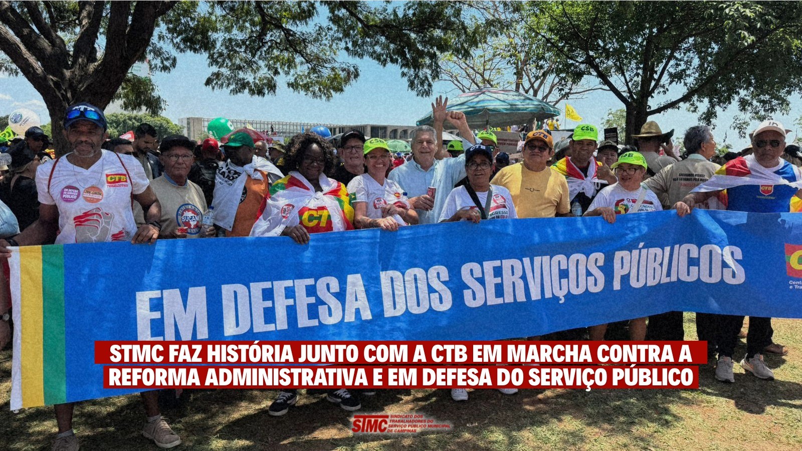 A Direção do Sindicato dos Trabalhadores do Serviço Público Municipal de Campinas (STMC) deu o recado em Brasília neste dia 29 de outubro, na MARCHA NACIONAL DO SERVIÇO PÚBLICO: DERRUBEM A PEC DA REFORMA ADMINISTRATIVA OU VAMOS PARAR O BRASIL!