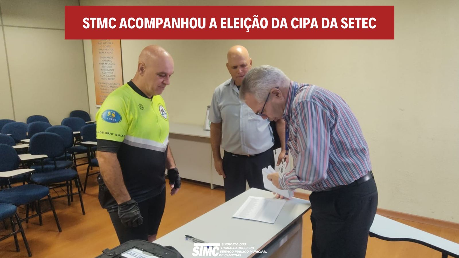 Diretores do Sindicato dos Trabalhadores do Serviço Público Municipal de Campinas (STMC) acompanharam a eleição dos membros da Comissão Interna de Prevenção de Acidentes (CIPA) da Setec. A instalação da comissão é uma vitória do Sindicato e dos trabalhadores que reconquistaram esse direito nos últimos dois anos.
